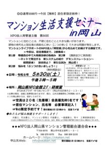 マンションライフサポートのNPO法人「岡管連」が心を込めてお届けする講座です。